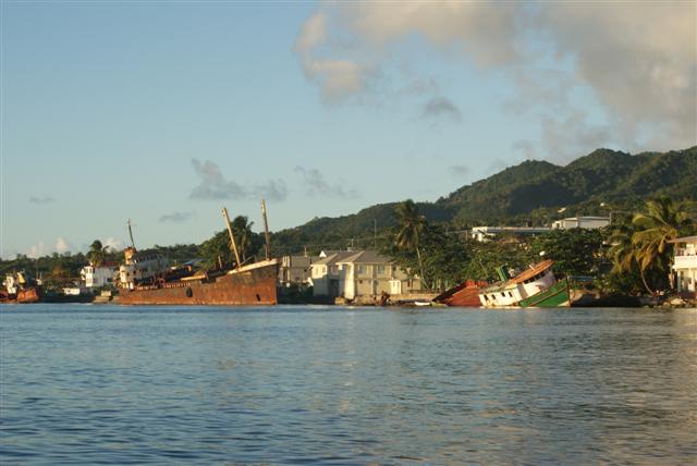 The next morning we awoke to a great view of the town and a lovely bar on the landing stage. As usual we went in search of the customs. We had all our papers stamped and signed and then had to go to the police station to get our passport stamped by immigration. If you think EU bureaucracy is bad, come to the Caribbean. We had a look around the town but it was election day and a lot of shops were shut but I found a great supermarket. I hadn’t seen a proper supermarket since Martinique so it was good to stock up with lots of nice food.