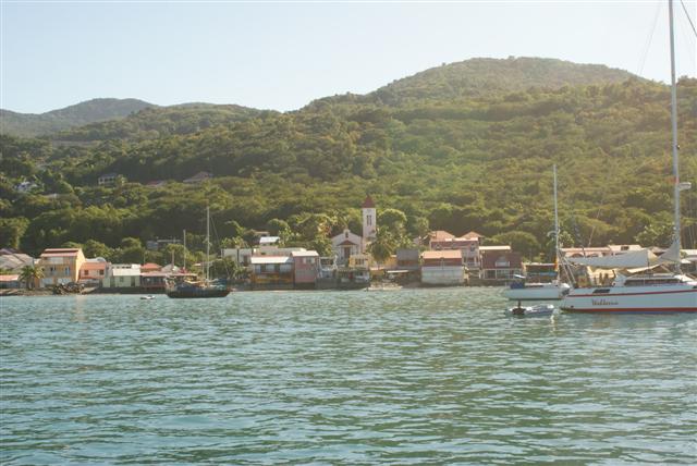 The next morning we got up early and set off for Iles des Saintes, an archipelago off the southern tip of Guadeloupe. Imagine the natural beauty of the Isles of Scilly combined with French culture and Caribbean weather and you have Iles des Saintes. Unfortunately there wasn’t any wind so we motored all the way. We arrived at lunchtime and anchored next to Bionic off Le Bourg (which literally means ‘the town’) on Terre d’en Haut. The BWR Australian boat Gaultine III arrived shortly after and the crews from the 3 boats spent New Years Eve together.