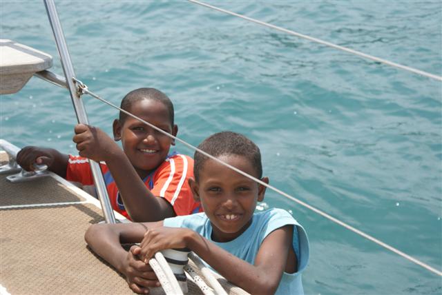 The Kunas accept visitors but intermarrying is forbidden and foreigners can’t buy land or invest in Kuna Yala therefore it remains unspoilt. We visited the island of Nalunega to meet the Kunas with the crews of Enchantress, Bali Blue and Miss Tippy with their children. The Kunas are physically small but they are peaceful and crime is extremely rare.