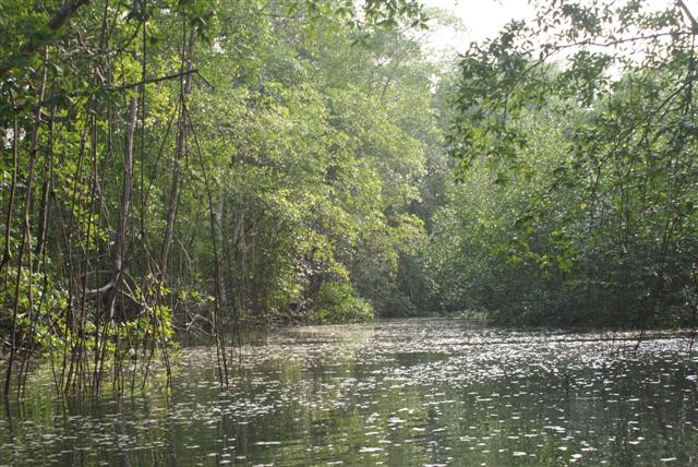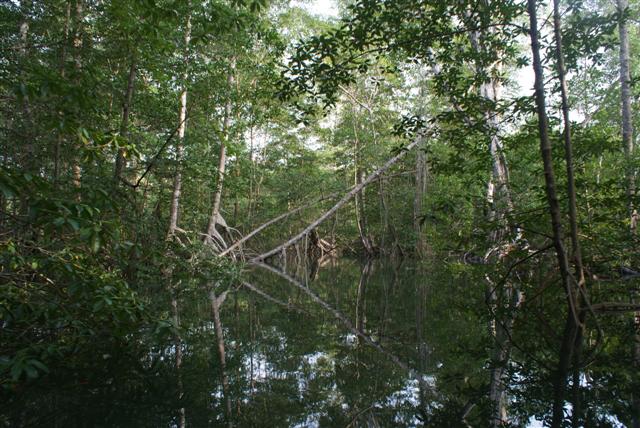 As the tide turned we rowed back marvelling at the wonderful reflections the mangroves made in the calm still water as it gently ebbed away in the fading light.