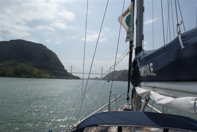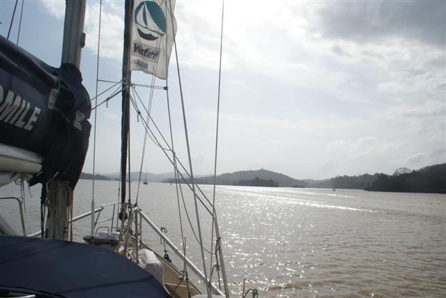 The next morning we awoke to find we were in a huge lake, that we hadn’t been able to see in the dark the night before. Some people had sore heads but we were all up ready for a new set of transit advisors to board us at 6am and off we went. Unfortunately the transit advisor for Gaultine III didn’t turn up and they were left behind. We asked our advisor if we could wait but he wouldn’t hear of it, the canal runs a tight schedule and they would have to lock in later. Gatun lake is man-made and extends across the isthmus; it covers an area of 117 square nautical miles. It was formed by erecting the Gatun dam across the Charges river.