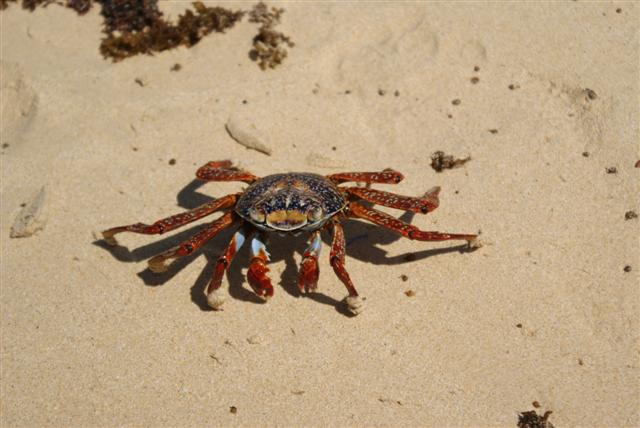 We wandered over to the rocks around the edge and saw many Sally Light foot crabs with their beautiful red and white spotted legs attached to their blue spotted bodies running sideways across the beach.