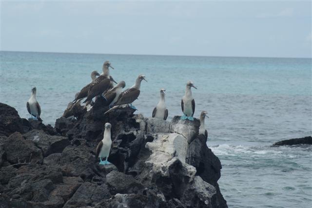 We all got into the large dinghy and were taken ashore. We went for a walk along the beach and saw lots of blue-footed boobies. We snorkelled off the beach where there were lots of fish. We returned to the boat to relax for a few hours and have a long shower.
