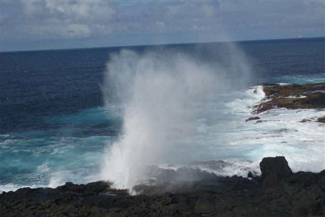 It was amazing to be so close to birds with their young. This photo of a Nasca boobie with her baby was taken right next to them and not with the zoom lens, they were sitting in the cliff just above our heads. We stopped on top of the cliffs for a photo opportunity. With the heavy swell running below it was creating a spectacular blowhole with thundering spray shooting 30 metres into the air.