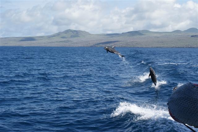 As if on cue the call of “Dolphins” was called out and everyone rushed to the bow of the boat to watch them. We’ve had Dolphins many times swimming in our bow wave but Daphne was travelling at 15kts which is twice as fast as Camomile and the Dolphins were still managing to keep up. The extra speed seemed to excite them more because they were also leaping right out of the water in our wake. It was going to take quite a while to get back so we watched a BBC Galapagos documentary, which was very interesting. We arrived back to a cloudy evening.