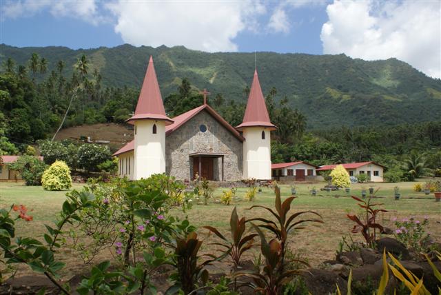 We continued across the mountainous terrain to Hatiheu on the north coast with its black sand beach for a delicious lunch at Chez Yvonnes. The Hatiheu church stands majestically overlooking the village.