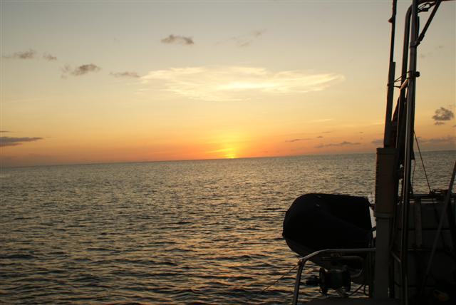 Camomile has a small watermaker which produces fresh drinking water by compressing seawater through a membrane. Some fifteen days into the passage we found that we were having difficulty with it as it had started to draw in air somehow. It seemed as though the lift pump was not working so a replacement or a very flat sea were the only fix. Neither was available but, as the tanks had been regularly topped up along the way, we still had at least 300 litres on board with backup systems to prevent any accidental loss. Camomile was built with two water tanks totalling around 450 litres which can be isolated from each other and I had added an entirely separate dedicated drinking water tank of 90 litres. This arrangement means that we can judge quite accurately how much we have on board and can take on water from local sources without the worry of compromising our drinking water supply. The daytime temperature was by now peaking well above 35 degrees and drinking less was not an option in the tropical heat so, with our drinking water tank luckily nearly full, we decided to cut down our consumption by washing in seawater. Thus it was that our daily ablutions transferred to the transom boarding platform where, with careful precautions against the soap or anything else falling overboard, we would take it in turns to shower by pouring buckets of sea water over each other and then having a final small rinse in fresh water. It sounds basic and cold however with the water temperature at more than 27 degrees it was just mildly refreshing after the heat of the day.