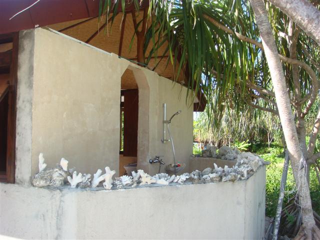 Xavier and his wife bought one of the atolls (didn’t like to ask for how much) and they are building a home on it in true Robinson Crusoe style. The building behind us houses the kitchen with the bathroom off to the left. It’s built on stilts in modules; the bathroom was wonderful with its outside shower.