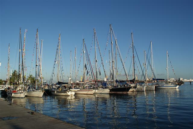 All the boats were tied to one jetty so on the last evening, which was a Friday, we had an impromptu pontoon party where we all brought a plate of food and we followed it with a heat of the Blue Water Master Millionaire challenge aka ‘Friday night is quiz night’. It was great fun, I organised the crews into teams, they had to think of an inventive name and each team was asked 10 questions. Although it was ‘just for fun’ some people took it seriously and some even dressed up, the vision of Stuart (Gaultine III) and Paul (Jackamy) dressed in sarongs and blue wigs will stay with us for a long time!! We had a really fun time and it ended with a tie between the ‘Tippyies’ and ‘Balibou’ (Bali Blue and Natibou). The following morning we all waved goodbye to Norsa as Norman and Sara were leaving the rally.