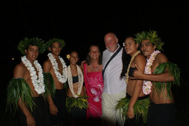 The following day we were entertained very well by the local tourist board with the presentation of leis in the afternoon followed by a delightful reception in the evening. We were ‘summoned’ to attend by some Polynesian musicians and everyone followed ‘Pied Piper’ style through the town to the charming French colonial style city hall for a delicious buffet. We were then treated to a wonderful display of Polynesian dancers performing some traditional dancing. Beautiful men and women performed dances that have been handed down through the generations.