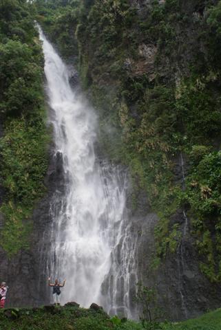 We continued around the island to the Faarumai waterfall. It was only a five-minute walk from the road and a very impressive sight. The rain continued but at least liquid sunshine was warm!