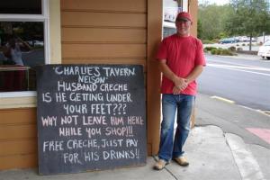 After all the housekeeping we were able to have a wander around the town, this sign was outside one of the local pubs, a good way to get more customers in!