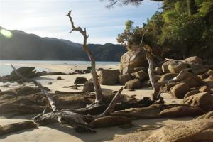 On the way back we spotted seals playing around the rocks so we took the dinghy in closer to get a better look. The next day was usual Monday morning weather, blue skies and light winds so we motored further north. We passed a couple of bays with names like Mosquito bay and Sandfly bay, they didn’t sound very inviting, and anchored in Tonga bay. This had the best beach in the Able Tasman; it seemed to stretch on for miles. We walked some of it but the anchorage was very rolly and, as we were on a lee shore, we decided to sail back to Adele island.