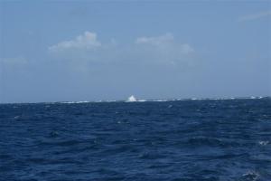 The anchorages around the Vava’u group are beautiful and we stopped at several but the best one was off the island of Kenutu, the most easterly of the islands. It has quite a difficult approach through the inner reef amongst the coral heads but, with difficulty, we found the entrance after half an hour of looking and were rewarded with a spectacular scene of the ocean waves exploding around the ends of the island.