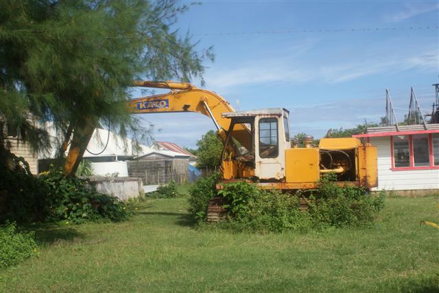 We continued to Pangai, the ‘capital’ of the Ha’apai islands. There were several other yachts there so it was nice to have a chat with them. We were hoping to get some supplies but the market had very little for sale. There were a couple of little shops selling tinned goods but nothing fresh, I don’t know what these people live on. We’ll have to wait until we get to Neiafu. We wandered around the village and found this abandoned digger in someone’s garden.