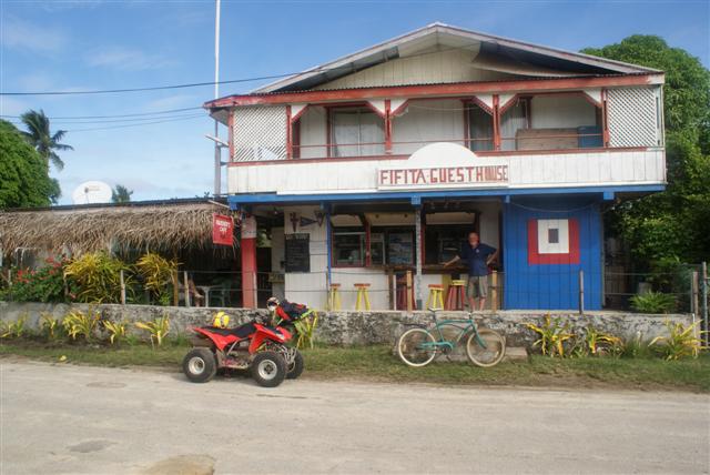 Neiafu isTonga’s second ‘city’, but it’s still a sleepy little town of 6000 inhabitants. It’s more colourful and appealing than Nuka’alofa. The next morning we all headed back into town to look at the shops and found a wonderful local market selling lots of bananas, pineapples, papayas, long beans, peppers, tomatoes, lettuce, cucumber, onions, and watermelons for very little money. It’s possible to get potatoes but most of the locals eat cassava, which is a root vegetable similar to sweet potato, but a bit of an acquired taste. The ladies on the market stalls were very friendly and even though we were charged tourist prices it’s still very cheap ranging from T$1 to T$3 (35p to £1) a bundle. Although it seems much cleaner here it’s still quite dirty. There is a strange assortment of shops in Neiafu, many owned by the local Chinese community. It isn’t possible to get all your shopping in one place. I spend ages looking around them all to see what they have for sale and then go back to buy it. They may have chicken in one of the freezers in one shop but that same shop may not have kidney beans or coffee. The word ‘shop’ is a very loose term any way because some of them are little more than large garden sheds with very poor lighting and just warehouse racking for shelves.