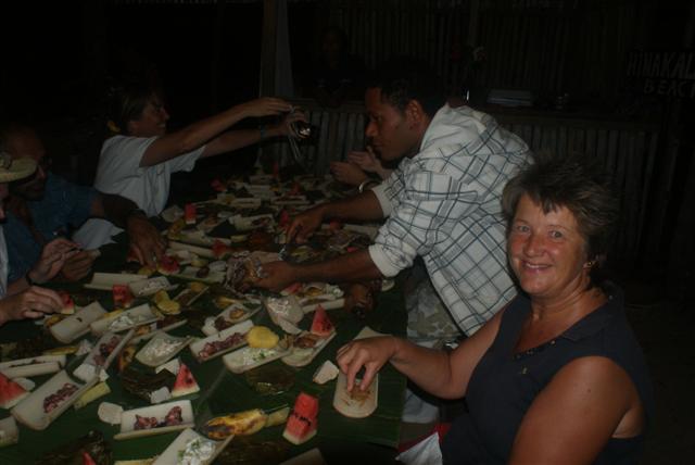 The ‘feast’ consisted of lots of ‘dishes’ served up on bamboo halves with a suckling pig in the centre. It was interesting trying new foods even though we didn’t recognise most of them.