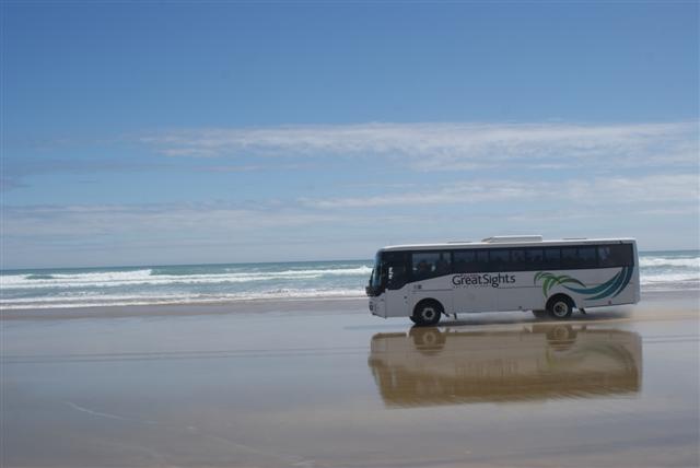Once all the buses were through we drove onto 90 mile beach. It’s actually only 56 miles or 90kms long and we drove along about 40 miles of it. It was an amazing journey. The sand was as flat as a motorway but a lot wider. The driver drove fairly fast slowing only for the few shallow fresh water streams that crossed the beach.