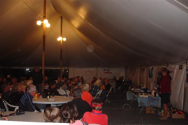 On the last evening, Saturday, there was a pork roast followed by prize giving when all the prizes John and Lyn have begged, borrowed or stole are given out. Every boat present gets a prize. We won a $200 dollar voucher for something we couldn’t use but managed to sell it for $100 to someone who could – result.