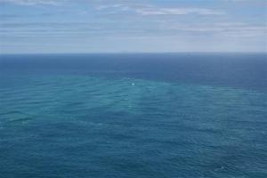 “The meeting point of Te Rerenga Wairua (cape Reinga) marks the separation of the Tasman sea from the Pacific ocean. For Maori these turbulent waters are where the male sea, Te Moana Tapokopoko a Tawhaki, meets the female sea, Te Tai O Whitirela. The whirlpools where the currents clash are like those that dance in the wake of a waka (canoe). They represent the coming together of male and female – and the creation of life.” As it was such a clear day it was possible to see the two seas coming together as they were slightly different colours.