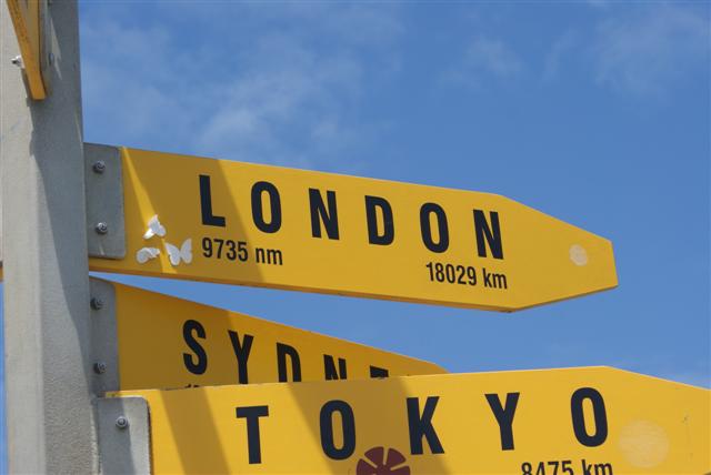 This sign next to the lighthouse shows we are a long way from home.