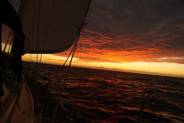 The first day at sea after coastal cruising is always a tense one. New Zealand has her toes in the Southern Ocean so there is apprehension over what this will serve up over the next week and after so long coastal cruising our sealegs are a bit shaky too. Sue usually feels sick for the first couple of days of a deep sea passage but this time she was fine and served up a nice hot precooked passage meal of chili con carne. Yum. After dark the wind turned to come from behind us and the sea state became confused so a frustrating few hours of slatting sails proceeded until, at around 1am, having failed to curse the unruly sail plan into submission and with only 5 knots of wind across the deck I called it a day and started to motor.