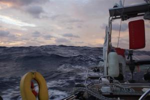 Neither of us slept very much last night. Bill chose to sleep in the cockpit for a couple of hours while I kept watch because he didn’t want to go too far away from the wheel while the sea was still rough. I laid down on the saloon berth but it’s difficult sleeping with the boat lurching from wave to wave. By 2am the wind went round to the east, which made the motion a bit better, and Bill went below to try and get a bit more sleep. I’m still doing my net each morning and we have Forteleza just behind us and Toucan is to our starboard. Norsa were a hundred or so miles behind us and chose not to stop at Minerva so now they are a little way ahead of us but the wind has pushed them off course and they are still quite a way east of the rhumb line. We’ve crossed back over the meridian line and during the afternoon crossed 20 degree south, which means we are back in the tropics. When we left NZ we had 3 layers on but each day we are able to leave more of them off. It’s now starting to get warm enough to sail in shorts and t-shirts. During the day the wind dropped to F5 and the sea started to moderate. As much as I love New Zealand I’m really not doing this passage again.