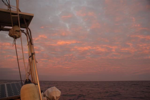We sailed over night but by the morning the wind was dropping again. We sailed slowly until midday when, with our boat speed down to 3kts, we put the engine on again. There are a couple of boats ahead that left the day before us but they haven’t got any wind either so we’ll just have to be patient. It was a frustrating day with only 105 miles covered in 24 hours but someone somewhere wished for more wind …..