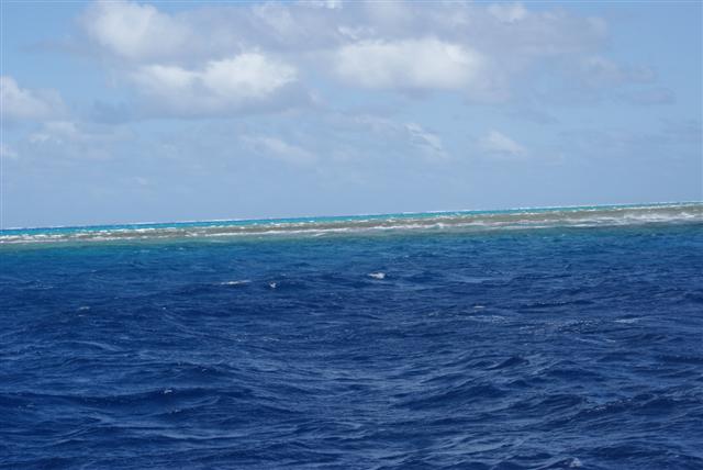We have crossed the 180 degree meridian line briefly to stop in Minerva reef. I’m not sure it will show up on google earth but it’s worth a look. It’s a circular reef about 3 miles across. There’s nothing here and sadly with the strong winds it’s too choppy to get in for a swim but it’s quite an experience being anchored literally in the middle of no where watching the surf explode onto the reef all around us. The wind is still blowing 25 – 35kts across the achorage but the sea is much calmer in here because the reef is breaking up the waves. The entrance was easy to see with the sun behind us. There are 3 other boats from our net who have also stopped but we don’t want to unpack our dinghies so we’ll just have a nice meal, a glass of wine and a good nights sleep, ready to go out into the ‘washing machine’ again tomorrow