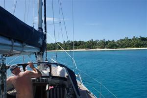 We weighed anchor at 10.00 the next morning and prepared to leave the reef with Forteleza (NZ) and Toucan (Irish). The engine has been acting up recently and just as we were motoring towards the entrance it started again. As you know I don’t do technical but Bill said the raw cooling water wasn’t getting through the engine properly, which means the engine could overheat. We turned back from the entrance while Bill manually fed water into the strainer to get the suction going on the water pump. After about half an hour of working on it, while I took the boat round in circles, he was happy for us to go back to the entrance and leave the reef.