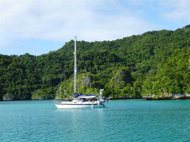 It wasn’t a very pleasant sail although it was a fast beam reach. The sea was very lumpy and I was sick several times. Bill didn’t get very much sleep and poor Norsa had another breakage. A large wave hit their deck and broke the reefing line for the genny therefore releasing the whole sail. Norman battled on deck for an hour trying to wind some of the sail in by hand but decided to wait for daybreak and then release and drop the whole sail. We stood by while they struggled on deck with it then we both continued to Vanua Balavu.