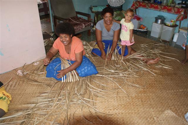 On Monday 28th May we motored around to the village of Daliconi to do sevu sevu and pay the chef for our stay in the Bay of Islands. We were shown around the village and met some happy ladies making coconut matting.