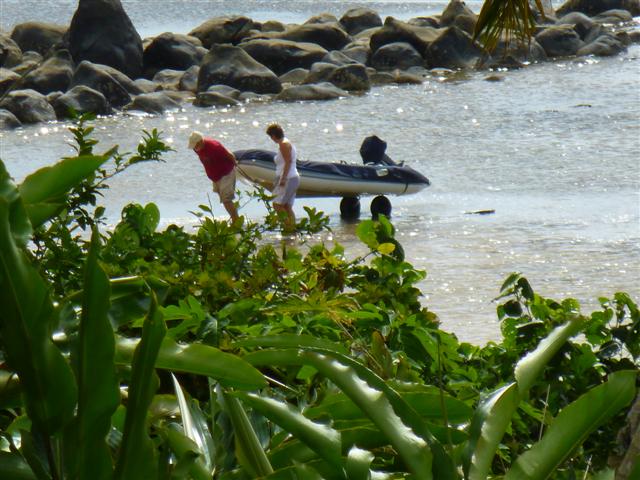 We left Vanua Balavu on 1st June and headed for Taveuni which is an island on the eastern side of Fiji. There were some nice restaurants where you could take the dinghy to. Unfortunately on this day it was low tide and we struggled to get it ashore.