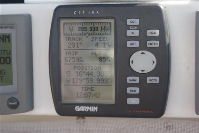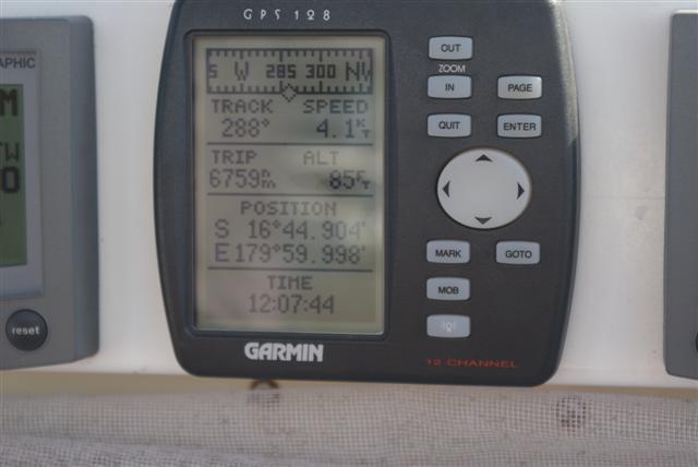 On 6th June we motored south. The island of Taveuni is the only place in the world that the 180 degree meridian line crosses. It’s possible to stand with one foot either side of the ‘line’. We really wanted to go ashore and do that but the wind picked up and we couldn’t anchor.