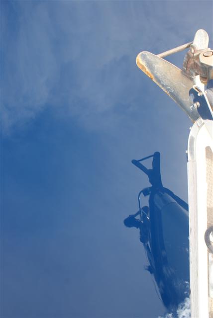 The 8th June saw us motoring without a breathe of wind to Savu Savu. I took this unusual photo on the way. It’s me looking into the calm water over our bow. The water was like a millpond.