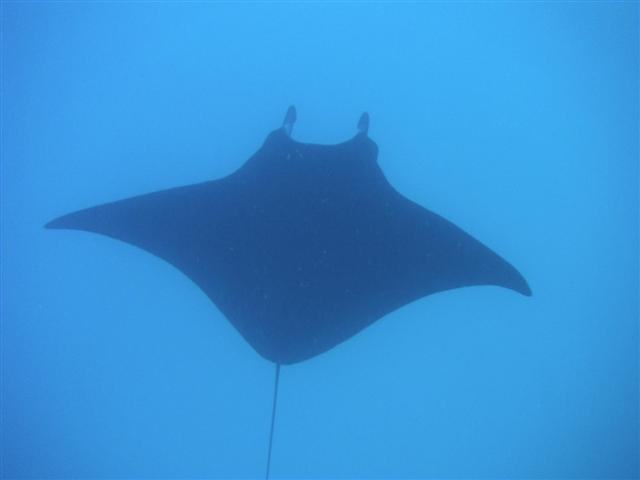 After we had inspected this we sailed south again to the nearby Manta Ray pass. As the name suggests the huge rays, often more than 4 meters across, are sometimes seen here. They are gentle, graceful creatures that come to feed on the small organisms carried by the currents sluicing through the pass and can be safely shadowed at a respectful distance with just a snorkel and mask. We were in luck and James was treated to the rare and exciting experience of swimming and free-diving with these amazing fish.