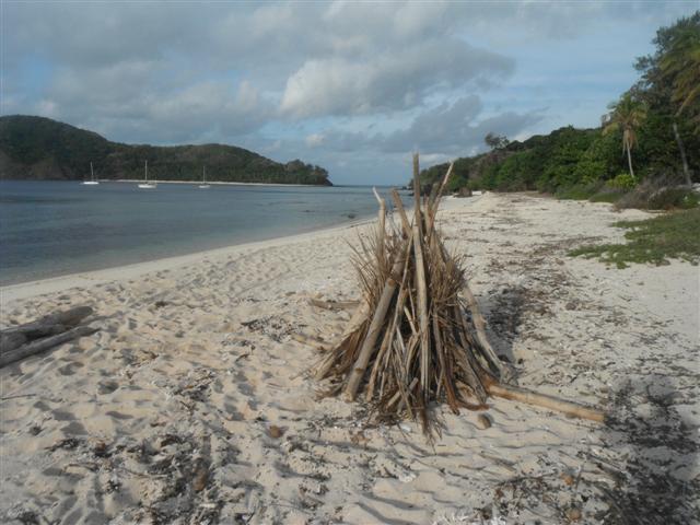 Our next stop was south of the Yasawas in the Mamanutha group, by the island of Navandra, uninhabited except for a goat. Some of Fiji’s best coral lies beneath the stunningly clear sea in the bay and exploring the deserted beach here and on the island next door was a lovely adventure. James decided to build a big fire in honour of my birthday, which we celebrated while there, but decided not to light it. It was to be our last taste of the rustic outlying islands with our next stop being the Musket Cove resort on Malolo Leilei. With Camomile med moored stern to a modern pontoon which forms a bridge to a tiny palm covered sandy island with a bar and a range of driftwood fired BBQs we put our feet up for a few days after our recent adventures. Civilisation is welcome when it comes in this form.