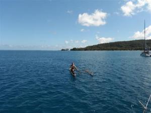 Anatom is the most southerly island of the Vanuatu group and has for a long time been overlooked by many yachts because it lacked any check-in authorities and the sail back from further up the chain against the prevailing South Easterly would be a hard flog at the best of times. This has now changed so we waited quietly at anchor in the protected lagoon behind Mystery Island and recovered from the passage until the following morning when the local policeman came to process us. We had several local people approach the boat in dug out canoes offering fruit and veggies and James couldn’t resist having a try out in one of the outrigger canoes. It was more stable than he was expecting.