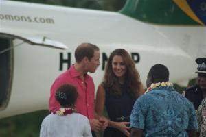 Great excitment here, we’ve just a royal visit from Prince William and Kate. On Monday at 4pm local time we joined a very excited group of locals at the little airfield to watch them arrive being the only white faces on the plebs side. While we were waiting we were interviewed by the Daily Telegraph. The first to arrive were 2 helicopters with special forces in them (we’ve had more police launches than we’ve ever seen in the islands buzzing around for the last couple of days) and a little plane with a few journalists and members of their staff.