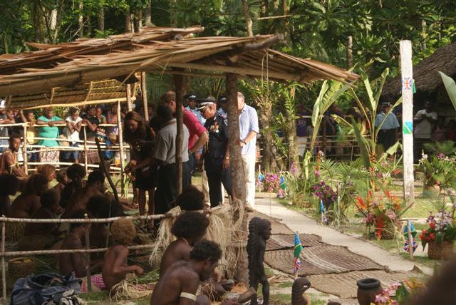 Some local men dressed as warriors or shall we say not wearing very much, performed a little war dance because the Prince could have come ‘in anger’. Once it was established that he was a ‘friend’ he was bestowed with gifts and traditional shell money.