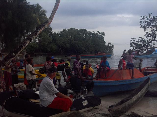 When we went back to the dinghy it was blocked in by local canoes. This must be the equivalent to having your car blocked in after a gig!