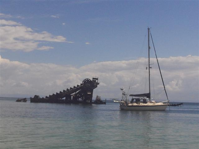 The anchorage was formed by the scuttling of workboats on a sand bank. There are 15 vessels ranging from dredgers to barges. Having been there 50 years they are now just rusty hulks but some coral has formed on them and there was abundant fish life. We spent a couple of day’s there swimming and snorkelling.