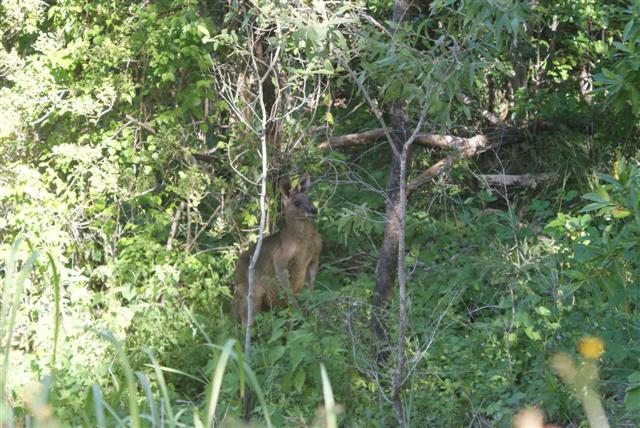 There was a lot of wildlife on the island; I spotted this kangaroo sitting below the path eating the foliage.