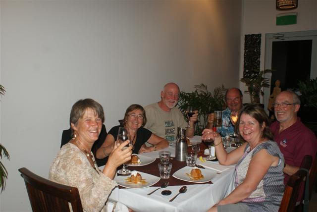 That evening Norman and Sara and Gary and Jackie joined us on Camomile for a celebration drink, then we all went to the Thai restaurant on the marina boardwalk for a delicious meal – another lovely treat.