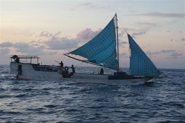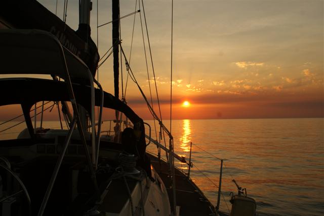 So far we are having a wonderfully boring but SAFE passage out here, long may it last. Sunday we had a light south easterly wind blowing so we managed to get the twizzle up and either sail or motor sail most of the day. At about 18.30 the wind veered to the south so we put the twizzle away and hoisted the main and a single genny and sailed most of Monday. Last night was a bit concerning because the boats ahead of us (this is when it pays not to be in the lead) were reporting groups of fishing nets with strobes on them. We have been warned about Indonesian fishing nets but we weren’t expecting them yet. I think it was because we passed the Dillon shoals last night where the sea bed goes from 500 meters to 13 meters, at it’s shallowest point, and it’s probably good fishing ground. The wind died over night and we’re motoring again.