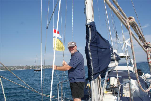 Our first day at sea has been mostly motoring without any wind. Last night the wind came up for about 4 hours then died but this morning it’s back again and we are sailing with the twizzle out. The wind is still very light so I don’t know how long it will last.