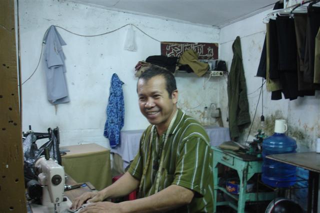 Alongside the market were lots of sewing rooms with very old singer sewing machines making quite nice clothes. This is one of the workers. They were sewing into the night. The flash on my camera made it look quite light in there but it wasn’t.
