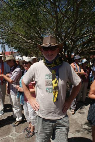 This is Bill with one of the lovely scarves that was presented to us. His hat is from Australia and is made of real kangaroo skin.