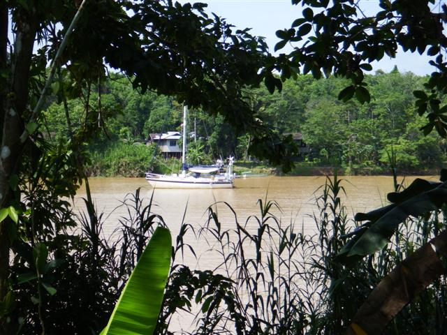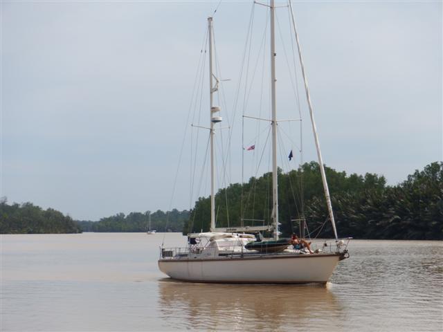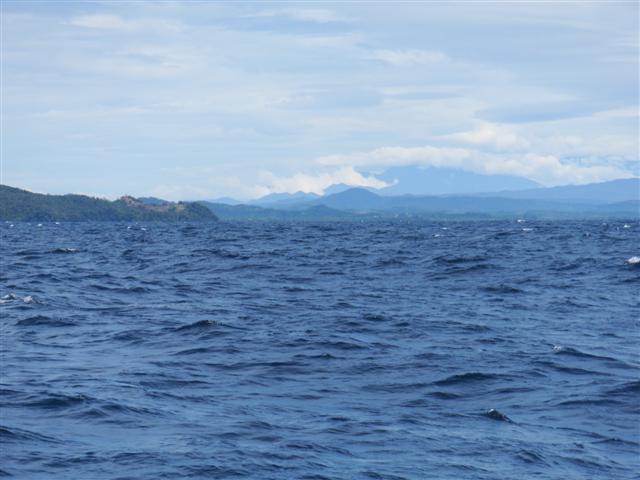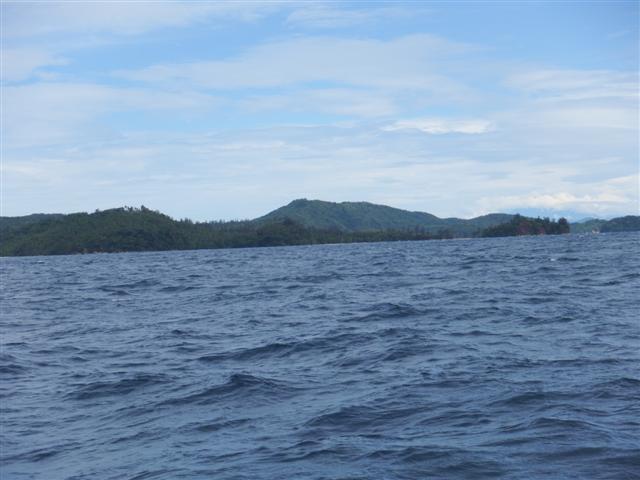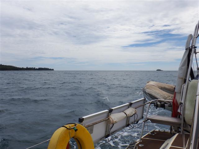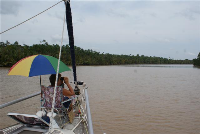 Bill had already managed to get the snubber off earlier so I crawled to the bow to guide Bill with hand signals as we raised our anchor. After about 10minutes of screaming into the wind and gesticulating frantically the anchor lifted clear of the water but not without a massive thump on the bow as it swung clear of the water. We motored to the other side of the bay, where there was a bit more shelter from the strong current that was pulling us towards the island, and re-anchored. Needless to say the trip ashore was cancelled and I didn’t get to see the turtles laying their eggs or release the baby turtles.