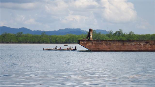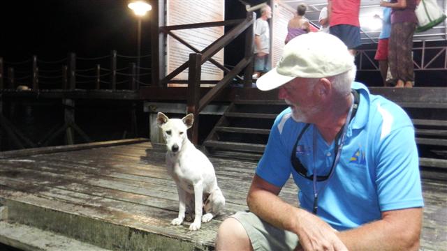 The wharf made an ideal setting for a pot luck supper so I got on the radio and managed to organise several tables, some chairs and a ‘pot’ from everyone for supper. We all took our own plates, k,f & s, and alcohol. We invited the navy boys to join us because they didn’t appear to have much food on board, cans of coke were also given to them and they seemed really happy with the invitation. It was that evening that we found out that we had become ‘tethered goats’. Earlier in the year there had been a pirate attack on the island of Mabul and one of the police or navy had been shot and killed and another had been taken ransom. If the pirates launched an attack on us the navy planned to capture one of them so they could exchange him for their colleague because the government won’t pay the ransom. Not sure how we felt about that situation but fortunately the pirates stayed away.